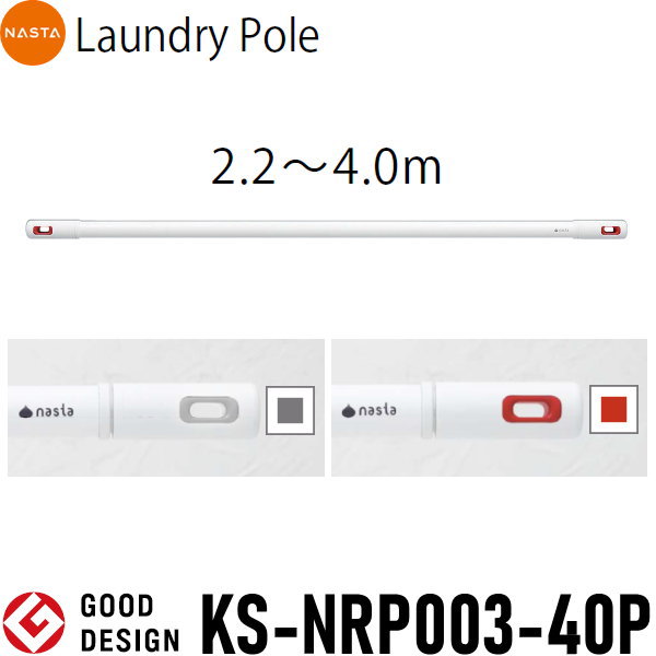 ■キョーワナスタ NASTA 物干竿 【ランドリーポール 屋内専用 2.2〜4.0m KS-NRP003-40P】 ※室内物干竿