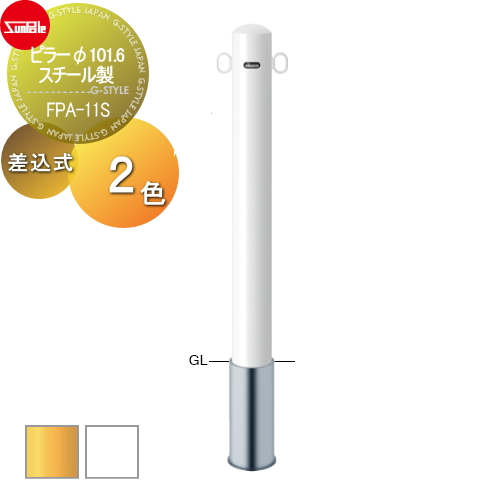 サンポール 車止め 車止めポール【ピラー φ101.6 スチール製 差込式(Y)黄/(W)白FPA-11S】 ※車庫まわり 駐車場 ガレージ 車止め カーストッパー