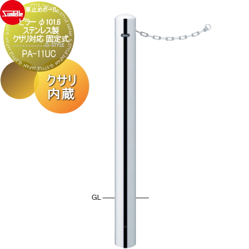 サンポール 車止め 車止めポール【ピラー φ101.6 ステンレス製 クサリ対応 固定式 クサリ内蔵PA-11UC】 ※車庫まわり 駐車場 ガレージ 車止め カーストッパー