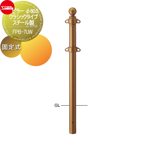 【商品名】車止めポール【ピラー φ60.5 クラシックタイプ スチール製 固定式FPB-7UW】
