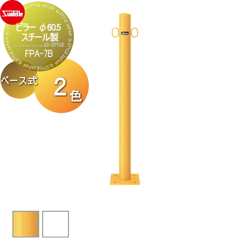 サンポール 車止め 車止めポール【ピラー φ60.5 スチール製 ベース式 (Y)黄/(W)白FPA-7B】 ※車庫まわり 駐車場 ガレージ 車止め カーストッパー