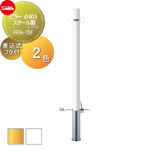 サンポール 車止め 車止めポール【ピラー φ60.5 スチール製 差込式フタ付 (Y)黄/(W)白FPA-7SF】 ※車庫まわり 駐車場 ガレージ 車止め カーストッパー