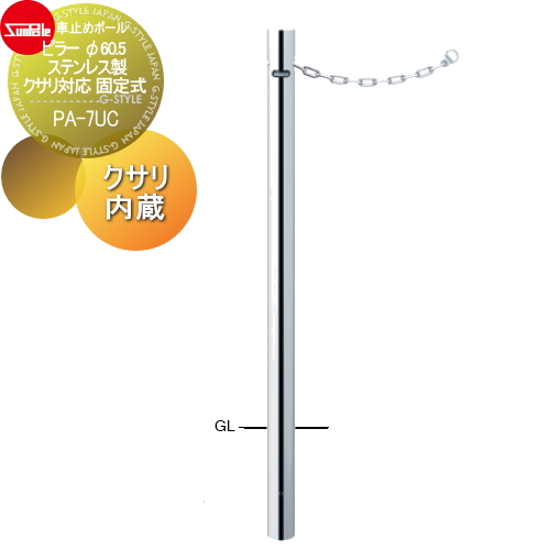 サンポール 車止め 車止めポール【ピラー φ60.5 ステンレス製 クサリ対応 固定式 クサリ内蔵PA-7UC】 ※車庫まわり 駐車場 ガレージ 車止め カーストッパー