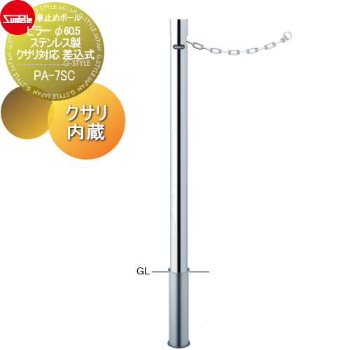 サンポール 車止め 車止めポール【ピラー φ60.5 ステンレス製 クサリ対応 差込式 クサリ内蔵PA-7SC】 ※車庫まわり 駐車場 ガレージ 車止め カーストッパー