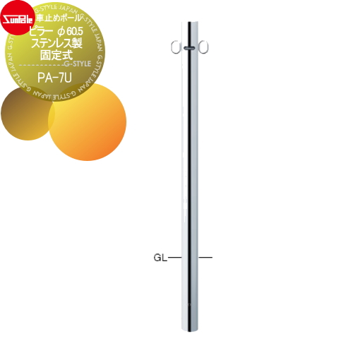 サンポール 車止め 車止めポール【ピラー φ60.5 ステンレス製 固定式PA-7U】 ※車庫まわり 駐車場 ガレージ 車止め カーストッパー