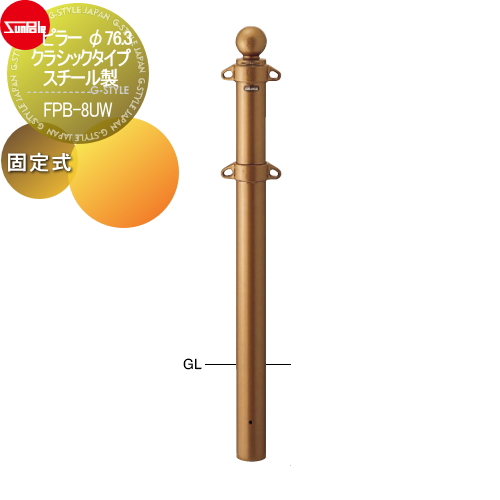 サンポール 車止め 車止めポール【ピラー φ76.3 クラシックタイプ スチール製 固定式FPB-8UW】 ※車庫まわり 駐車場 ガレージ 車止め カーストッパー