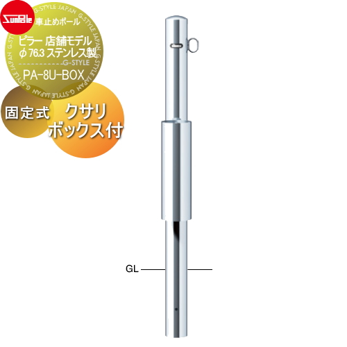 サンポール 車止め 車止めポール【ピラー 店舗モデル φ76.3 ステンレス製 固定式 クサリボックス付PA-8U-BOX】 ※車庫まわり 駐車場 ガレージ 車止め カーストッパー