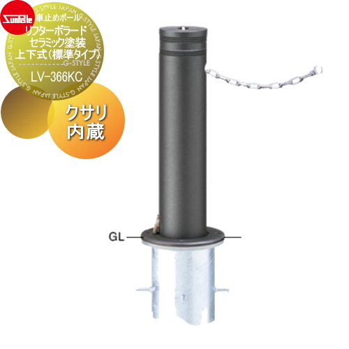 サンポール 車止め 車止めポール【リフターボラード φ165 セラミック塗装 170セラミックチタン 上下式(標準タイプ) カギ付(南京錠40mm) クサリ内蔵(2m) LV-366KC】 ※車庫まわり 駐車場 ガレージ 車止め カーストッパー