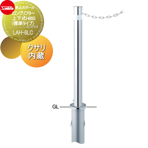 サンポール 車止め 車止めポール【ロングリフター φ76.3 ステンレス製 上下式H850(標準タイプ) ワンタッチロック付 クサリ内蔵(2m) LAH-8LC】 ※車庫まわり 駐車場 ガレージ 車止め カーストッパー