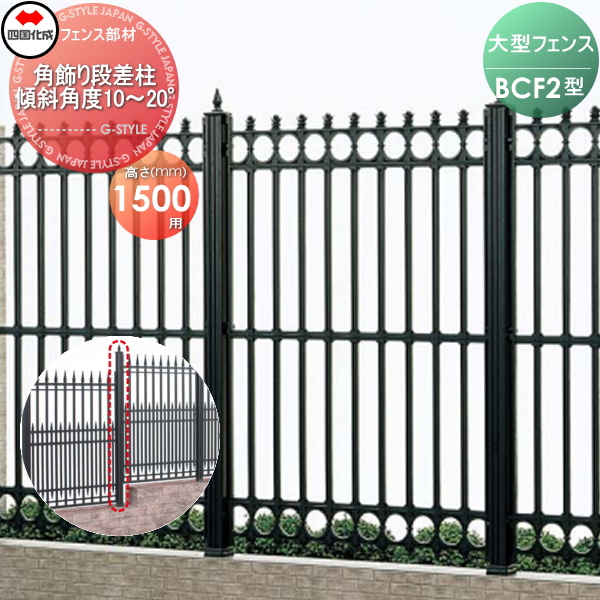 【商品名】大型フェンス BCF【2型用 角飾り段差柱 傾斜角度10°〜20° H1500】02KDP-19BK