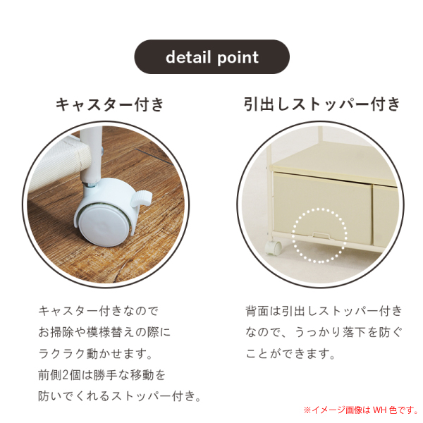 ・移動に便利なキャスターに、安心の引出しストッパー付き