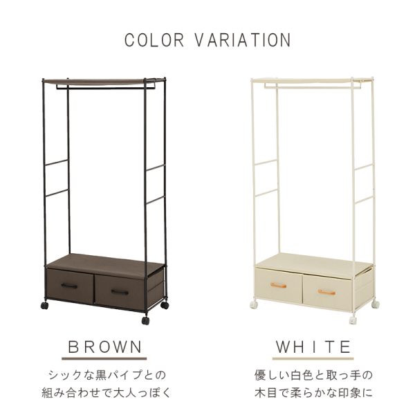ハンガーラック スチール製 幅75cm ホワイト キャスター ハンガーポール サイドバー 引出し付き S字フック付き 代引不可
