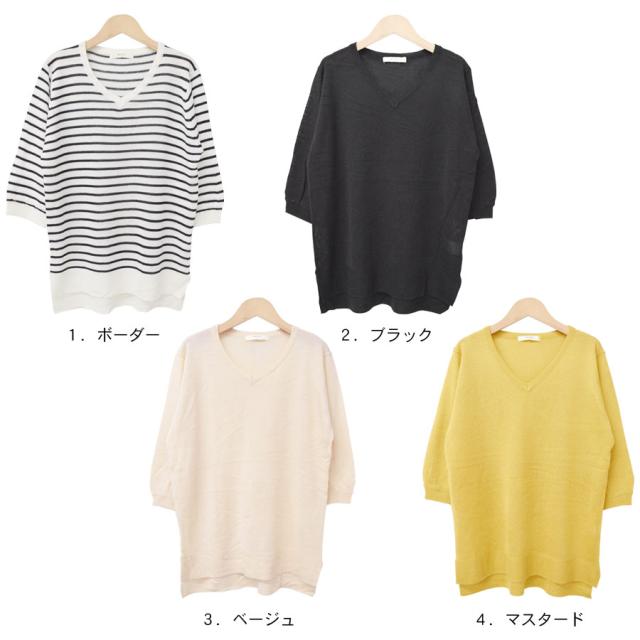 サマーニット ニット 半袖 Vネック トップス レディース 薄手 シアー 透け感 ニットソー 五分袖 七分袖 5分袖 7分袖 ボーダー 無地 シンプル オフィスカジュアル ニットTシャツ カットソー セーター 送料無料 fk25 (bdg364)