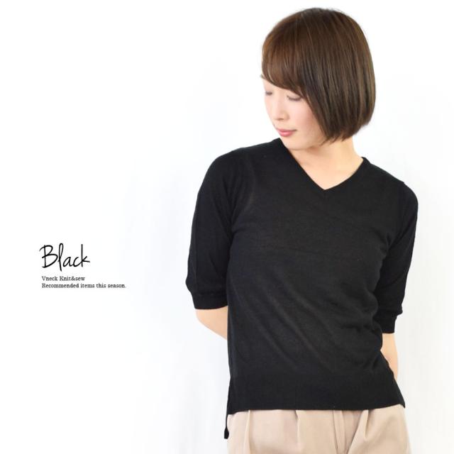 定番VネックのシンプルなニットTシャツ♪