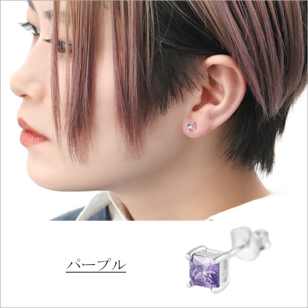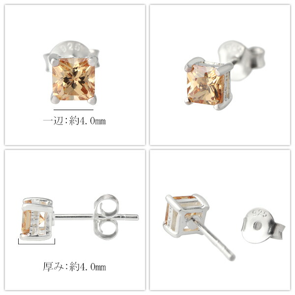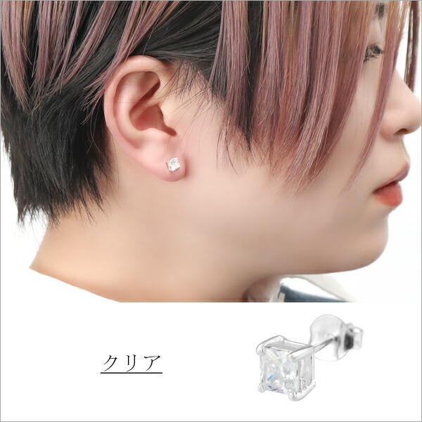 定番 4mm スクエア ジルコニア 一粒 スタッドピアス 1P 片耳用 シルバー925 シンプル ベーシック 一粒ピアス キュービックジルコニア