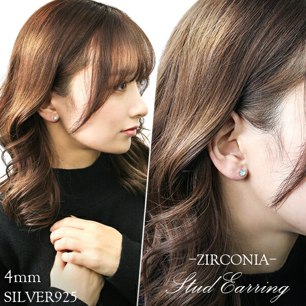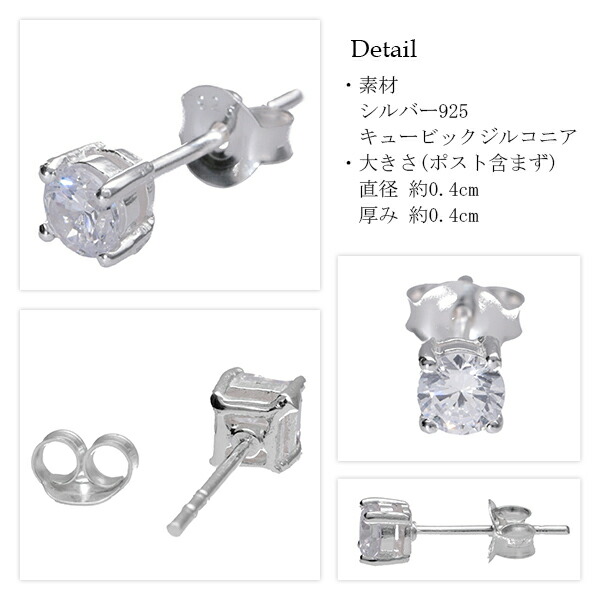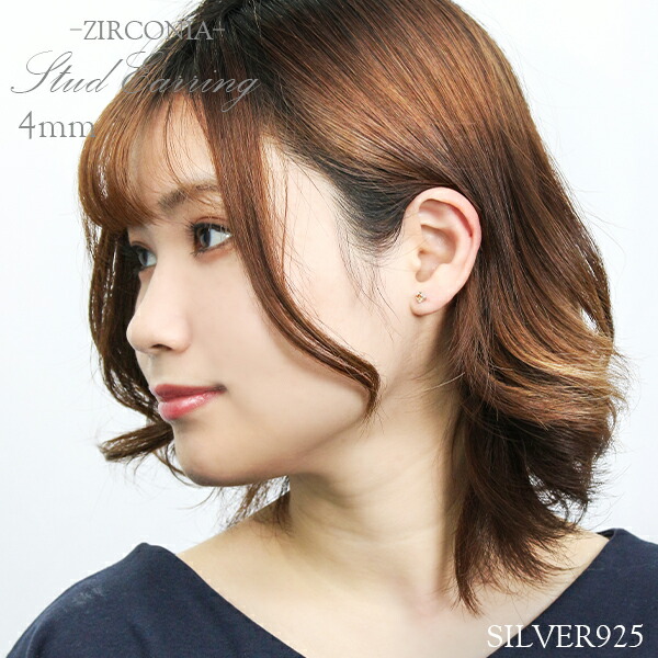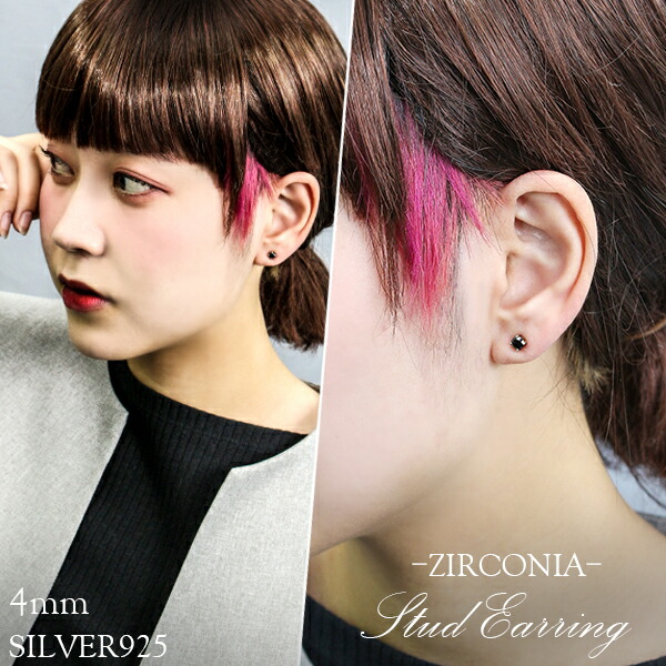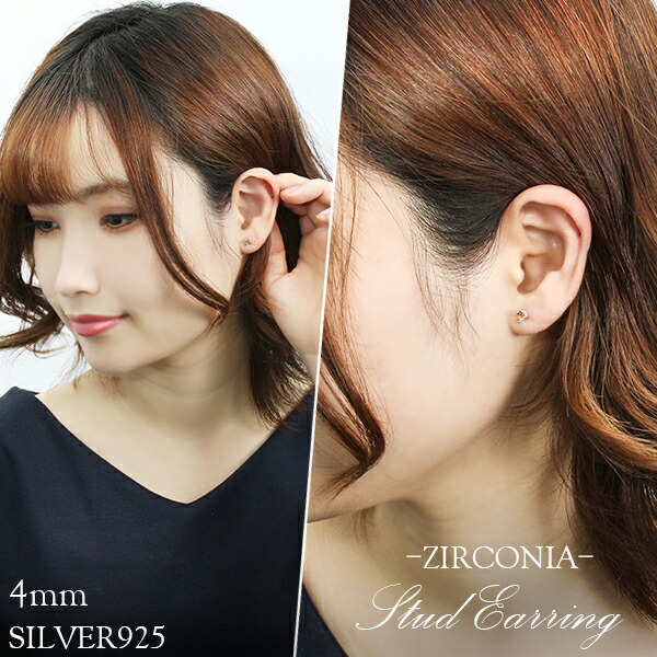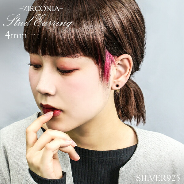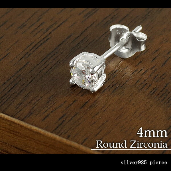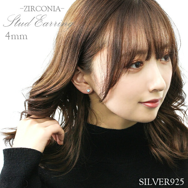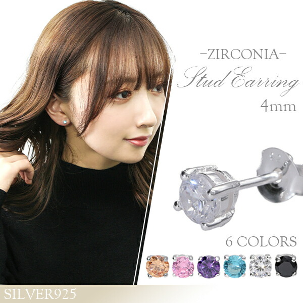 4mm カラー ジルコニア スタッドピアス 1P 片耳用 一粒 カラーピアス シルバー925 メンズ 男性用 レディース 女性用 シンプル ベーシック 定番 上品 ピアス キラキラ