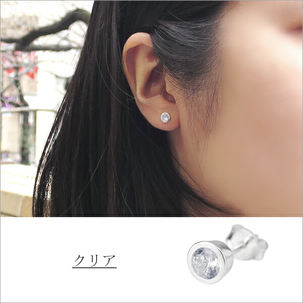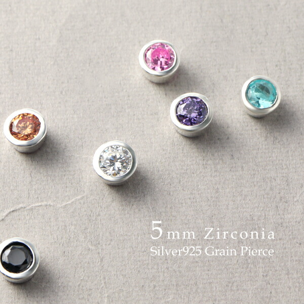 定番 5mm 覆輪留め ジルコニア 一粒 スタッドピアス 1P 片耳用 シルバー925 シンプル ベーシック 一粒ピアス キュービックジルコニア