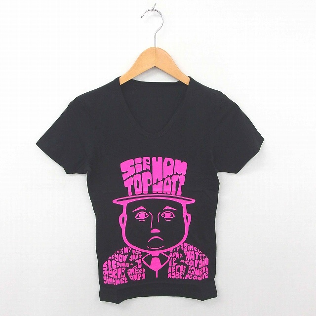 【中古】ロエン Roen トーマス コラボ Tシャツ カットソー Vネック プリント 綿 コットン 半袖 XS 黒 ブラック