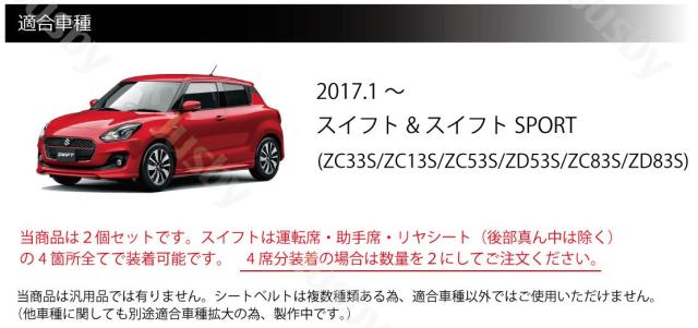 当商品は2個セットです。スイフトは運転席・助手席・後部座席(真ん中は除く)の4箇所装着可能です。