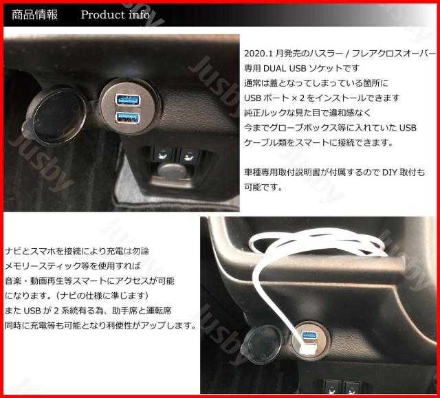 スズキ 新型 ハスラー (MR52S / MR92S) USB & HDMI or DUAL USBソケット 純正ルックにカーナビと接続 USB3.0対応 充電 通信 USBパネル パーツ アクセサリー
