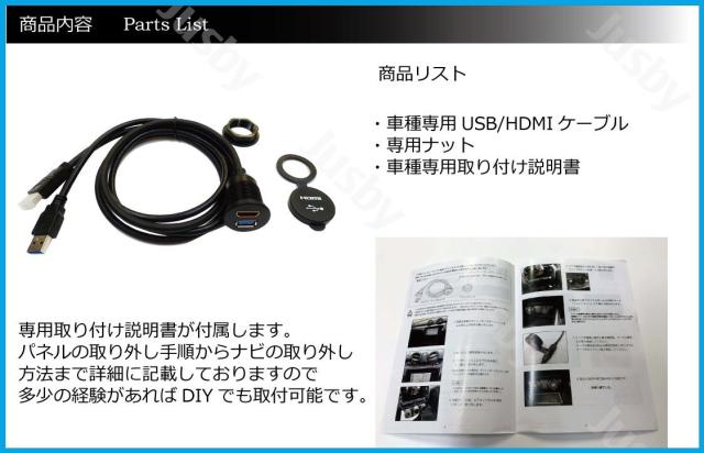 ※ナビによって別途USB接続ケーブルやHDMI変換ケーブルが別途必要な場合がありますのでご注意下さい。