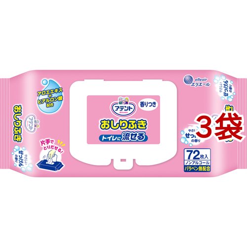 アテント 流せる おしりふき せっけんの香り(72枚入*3袋セット)[おしりふき]