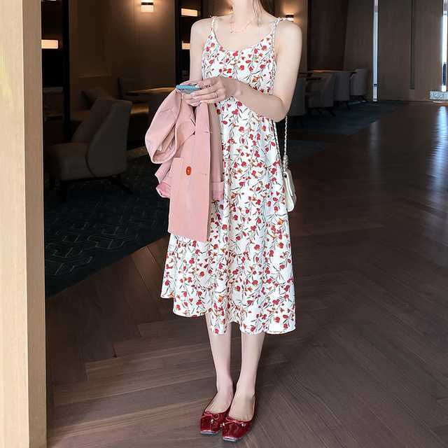 軽やかなシフォン素材の小花柄キャミワンピ。