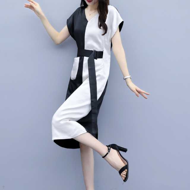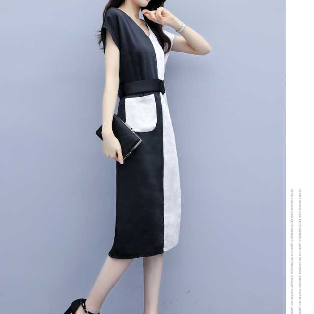 大胆なバイカラーデザインがお洒落なタイトワンピース。