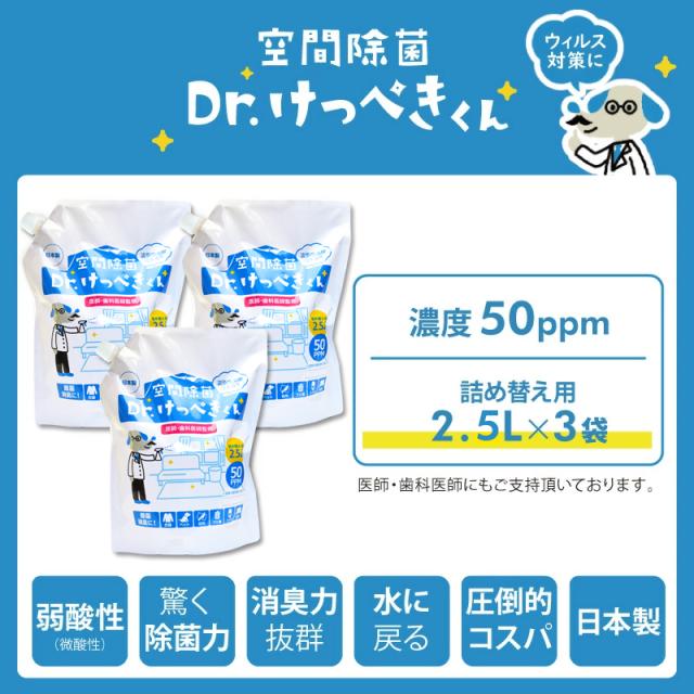 次亜塩素酸水 空間除菌Dr.けっぺきくん 《 50ppm 》 2.5L×3袋