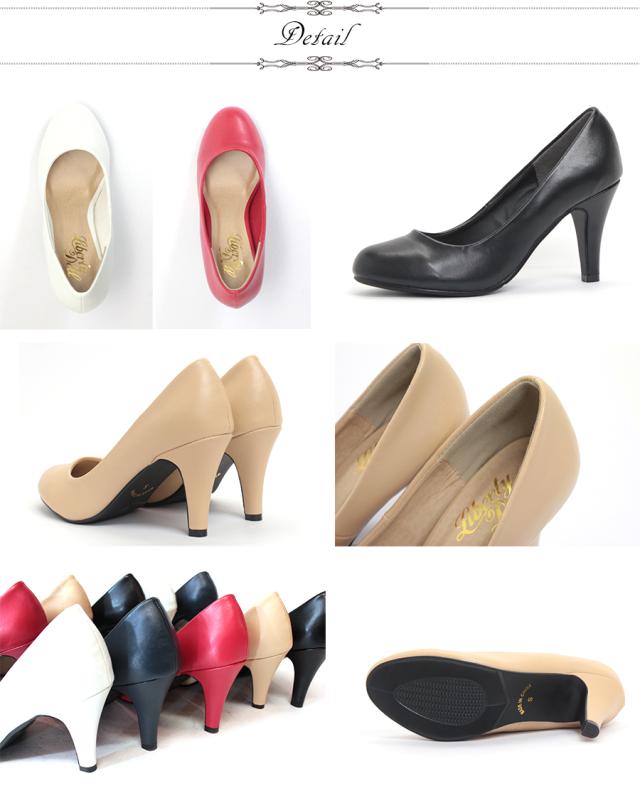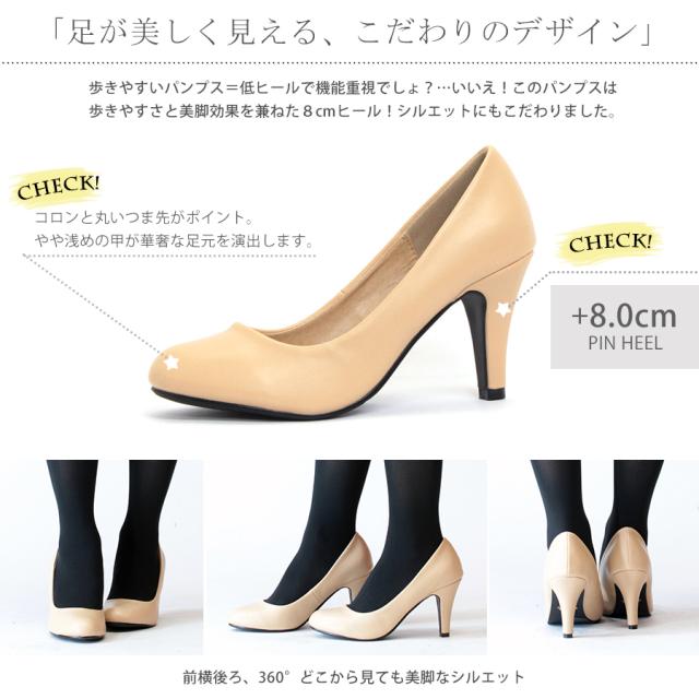 パンプス ラウンドトゥ ハイヒール 8cmヒール 5350-5351 痛くない 美脚 靴 レディース