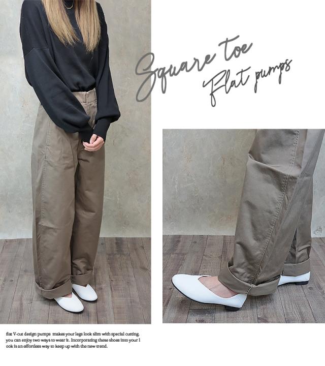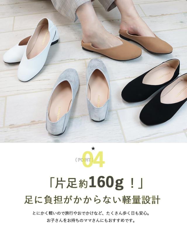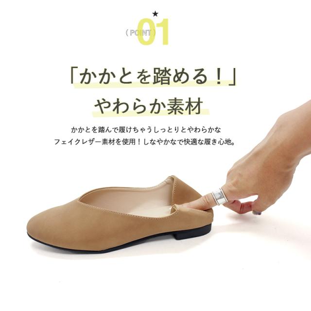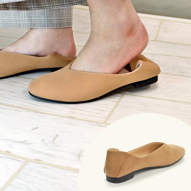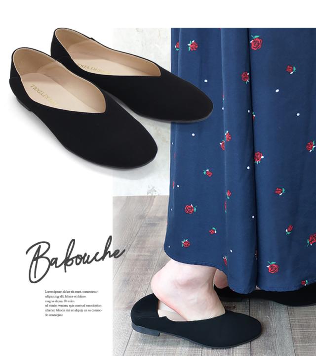 パンプス 痛くない レディース バブーシュ 1121 22.5-25cm かかとが踏める スリッポン カジュアル スクエア Vカット 合成皮革 レザー スエード ぺたんこ フラットシューズ 柔らかい おしゃれ 社内履き スリッパ 履きやすい