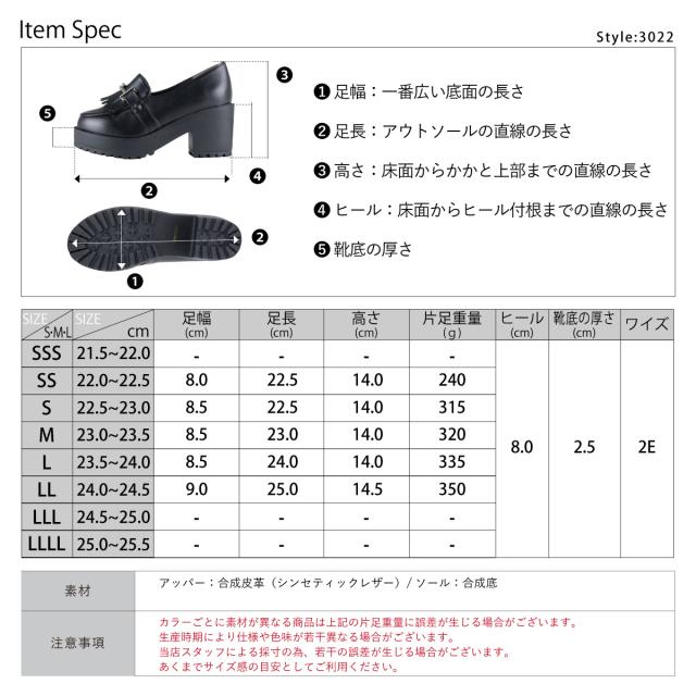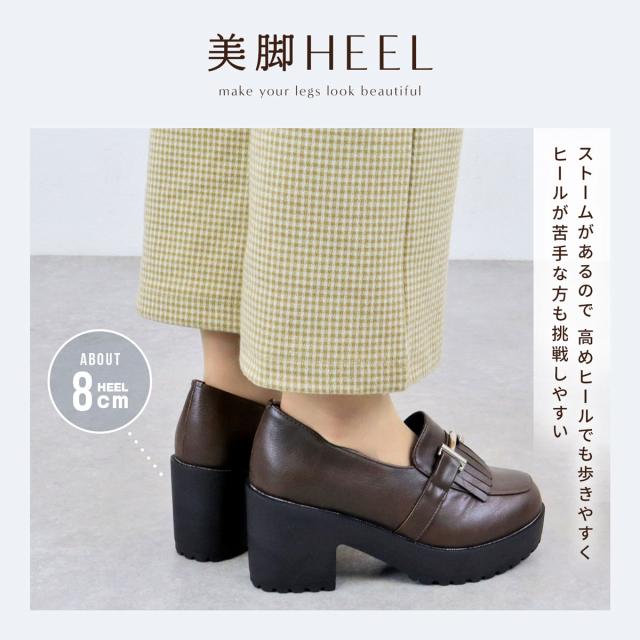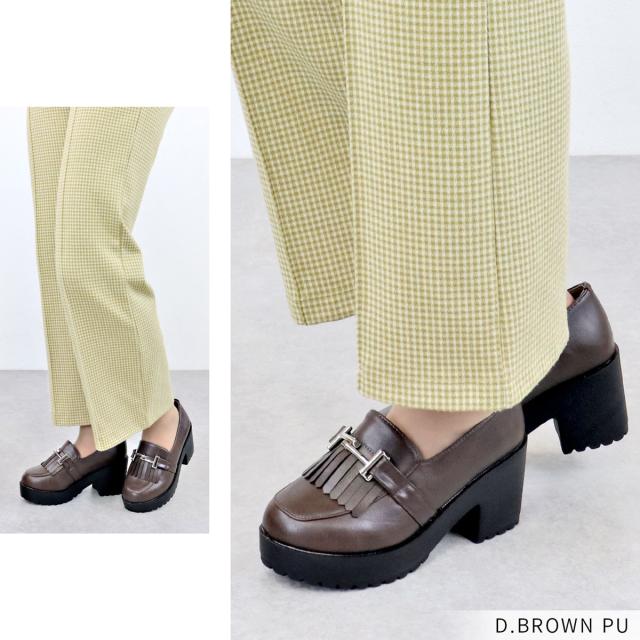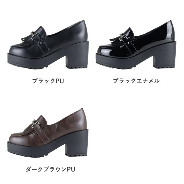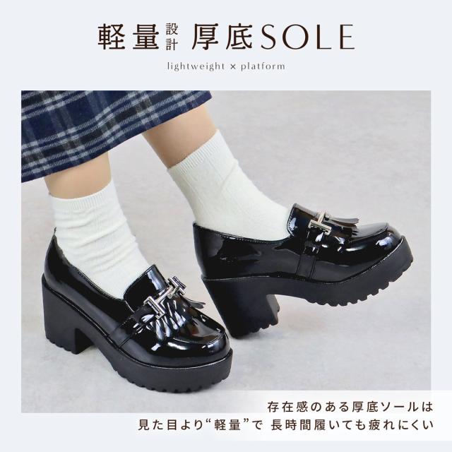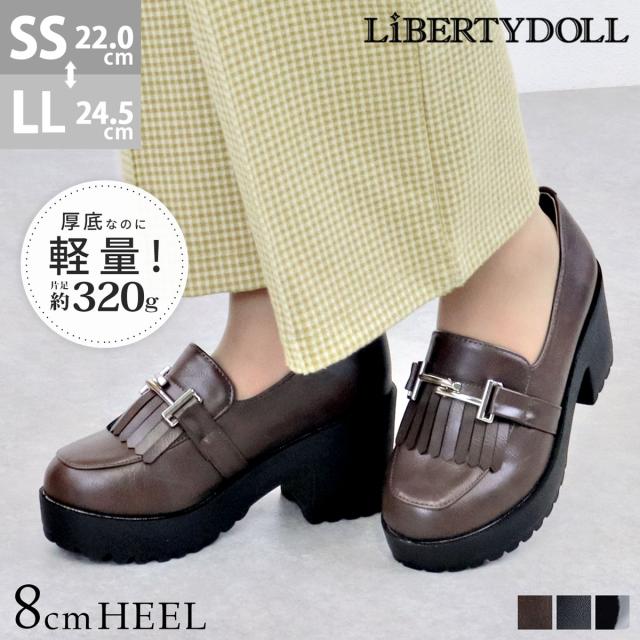 ローファー レディース 厚底 ビット おじ靴 フリンジ エナメル 合成皮革 マニッシュ 8cmヒール No.3022 22.0cm〜24.5cm 黒 ブラック LiBERTYDOLL リバティードール