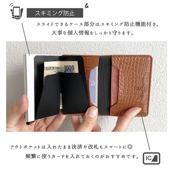 スキミング防止機能付きの高品質アルミ製カードケースは、スキミングという悪質な犯罪から個人情報を守ります。