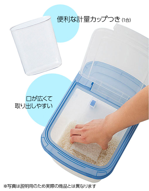 便利な計量カップ付き!最後まですくいやすい形状で、1合がはかれる計量カップが付いています。