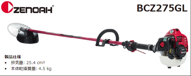 ゼノア 草刈機(刈払機) エンジン式 BCZ275GL-DC[ジュラルミンパイプ仕様](ループハンドル/STレバー) 排気量:25.4cc