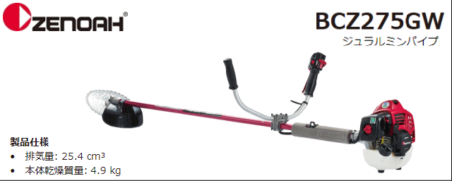 ゼノア 草刈機(刈払機) エンジン式 BCZ275GW-DC[ジュラルミンパイプ仕様](両手ハンドル/STレバー) 排気量:25.4cc