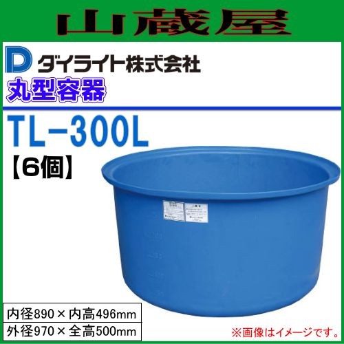 丸型容器 ダイライト T型丸型容器 300L TL-300 6個セット 漬物樽、魚の運搬、農薬の希釈 寸法:(外径)970×(全高)500mm 丸桶 [送料無料]