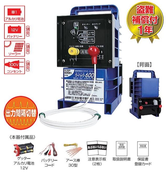[特売] 電気柵本器 末松電子製作所 クイック600 Qik-600 最大電線長さ 600m 対象動物によって出力間隔切替え可能 屋外用防雨設計 選べる出力パタン(連続、夜間) [送料無料]