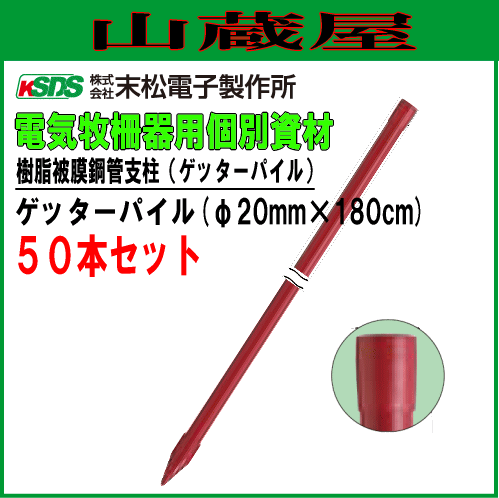 末松電子製作所 電気柵用支柱 ポール ゲッターパイル φ20mm×180cm 50本セット スタンダードな樹脂被膜鋼管支柱