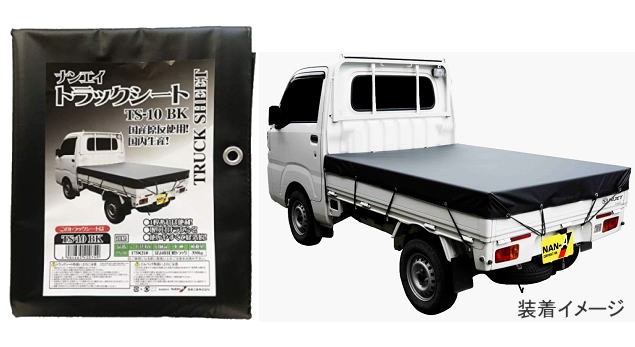 南栄工業 軽トラック用荷台シート TS-10BK (175cm×210cm) ターポリン生地 防水トラックシート 固定用ゴムバンド付
