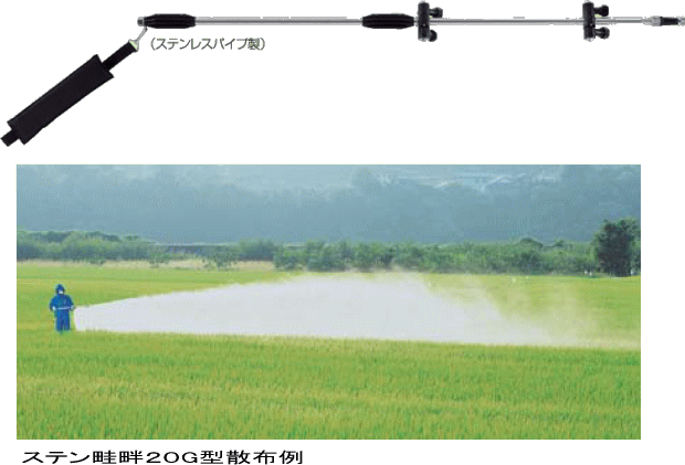| ・遠・中・近距離に均一に分散する霧が広域の省力防除に貢献しています。 ・先端ノズルは、磨耗し難いセラミックを使用しています。 ・パイプは腐食に強いステンレス製です。 ・各ノズル部には、ノズル番号が付いているため、噴板の掃除や交換のときに取り外しても元の位置に 取り付けられます。 また白色位置決めラインが付いているため、角度を適正に保つことができます。 ・網が付属されているためノズルの目づまりが少なくなります。 | ||||||||||||||||||||||||||||||||