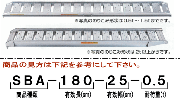 | 昭和ブリッジ 【農業機械全般向け】 SBA型 0.5t/セット SBA-210-25-0.5 有効長:2100mm 有効幅:250mm 最大積載重量:0.5t |