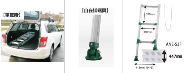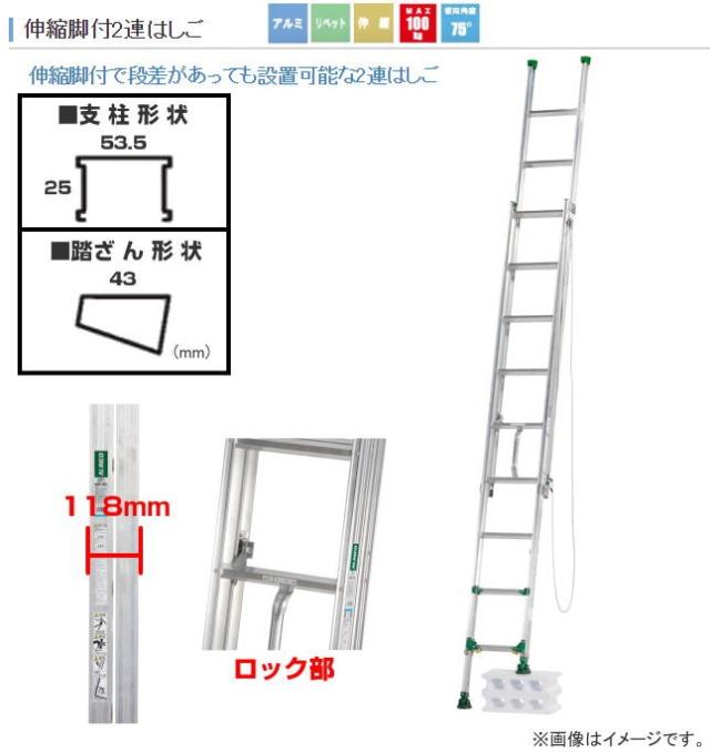 伸縮脚付で段差があっても設置可能な2連はしご | ||||