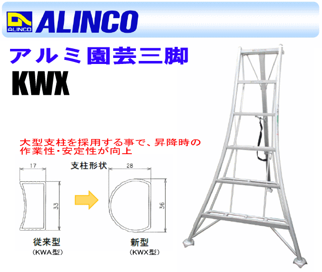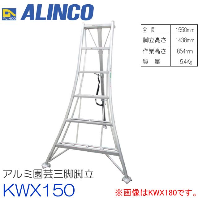 アルミ園芸三脚 アルインコ ALINCO オールアルミ製園芸三脚 5尺 KWX150 全長:1.55m 最大使用質量 100kg 脚元が軽トラックの荷台に収まります 大型支柱で昇降の作業性・安全性が向上 [送料無料]