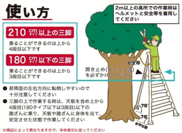 | 使用角度 | 75° | はしご等での昇降面の立て掛け角度です。 |