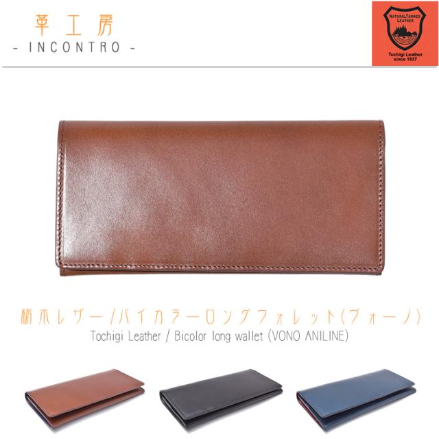 栃木レザー バイカラー ロングウォレット 長財布 革 本革 レディース メンズ 男女兼用 レザー 牛革 cow ユニセックス 栃木レザー ウォレット 日本製 ヴォーノ ボーノ アニリン 財布 VONO BUONO ANILINE ファスナー 小銭入れ