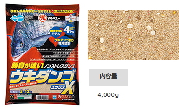 握りやすいウキダンゴ釣り用配合エサ。ダンゴが着底後、芯残りせずスムーズに崩れます。握り加減によって崩れ具合をコントロール可能。チヌが好む、さなぎ、ムギ、コーン、スパイスを配合しているため、すばやく寄せられます。水分が多いオキアミやアミエビとも相性が抜群。