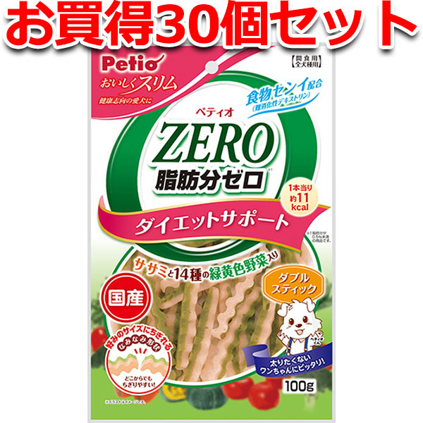 30個セット1個分無料|ペティオ おいしくスリム 脂肪分ゼロ ダブルスティック ササミと14種の緑黄色野菜入100g 国産 日本製 犬用おやつ 鶏肉 ささみ イヌ 6ヶ月〜 太りたくないワンちゃんのダイエットサポートスナック 食物繊維 難消化性デキストリン配合 Petio
