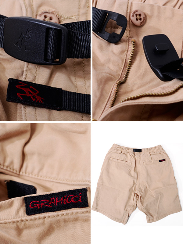 GRAMICCI NN-SHORTS グラミチ ニューナロー パンツ 【GRAMICCI(グラミチ)】 「頑丈、かつクライミングに適した動きやすさ」を追求して、 1970年代にアメリカで「ストーンマスター」と呼ばれロッククライミング界をリードしてきたマイク・グラハム氏が立ち上げたブランド。 当時のクライミングウエアでは満足できず、独自の手法で機能性に富んだウエア作りに着手し、 独特の機能性、180度自然な開脚を可能にした「ガゼットクロッチ」や片手で簡単に調節できる「Webbingベルト」が装備されています。 キャンプやBBQなどのアウトドア用だけではなく、タウンユースとしてレディースメンズ問わず愛用されています。 GRAMICCIの代名詞でもあるG-SHORTS。 このオリジナルショーツから、現代のニーズに合わせ生まれた定番ショーツ、NN-SHORTS。 前開き仕様になり、GRAMICCIのショーツの中では最も細身のシルエットで、すっきりとスマートな印象です。 細身シルエットですが、ストレッチツイルを使用していますので、快適な動きが可能です。 | ||||||||||||||||||||||||||||||||||||||||||