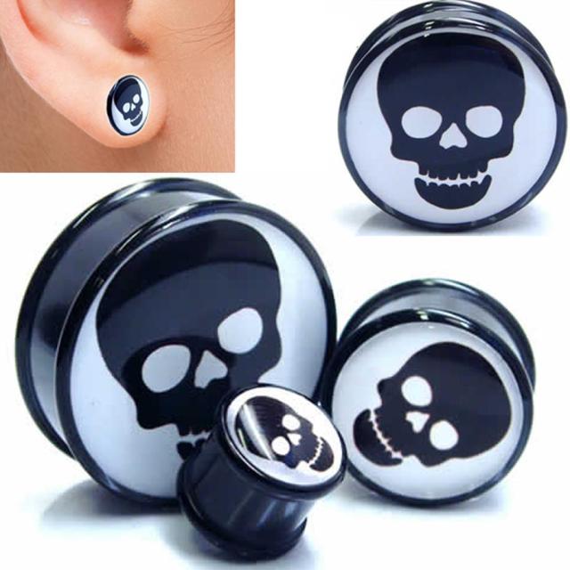 [アクリル プラグ ボディピアス ] グラフィックファントムスカルプラグ 1個販売 ボディピアス 金属アレルギー対応 メンズ レディース ダブルフレア プラスティック プラスチック 樹脂 黒色 ブラック ホワイト 白色 ガイコツ ドクロ 髑髏 骸骨 がい骨 ハロウィーン コスプレ